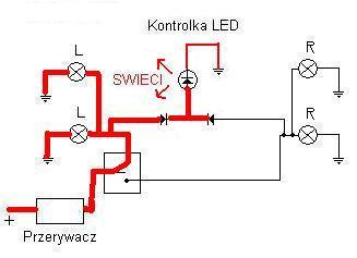 - Jeżeli chcielibyśmy zrobić światła awaryjne to kontrolka nie będzie świecić (brak "masy" ).